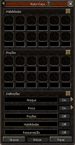 - A utilização de Poções, Habilidades e Ressurreição está disponível através da Auto-Caça Premium na Loja de Itens.