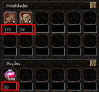 É possível modificar o tempo de ativação das Poções e das Habilidades, alterando o número sob a respectiva ícone, que indica o número de segundos antes do próximo uso.